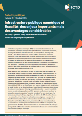 L’infrastructure publique numérique (IPN) – un ensemble de systèmes et de plateformes numériques interopérables qui soutiennent la prestation de services, l’échange de données et les fonctions des secteurs public et privé à grande échelle – devrait révolutionner les services publics et remodeler l’économie numérique. Cette note d’orientation reconnaît que l’interface entre la fiscalité et l’IPN revêt une importance particulière et que certaines expériences antérieures en matière de numérisation de l’administration fiscale ont été contraires aux principes fondamentaux de l’IPN, à savoir l’ouverture, l’inclusion et l’autonomisation des utilisateurs. Cependant, grâce à un alignement minutieux des programmes relatifs à l’IPN et à la numérisation de la fiscalité déjà en cours, la fiscalité offre une formidable opportunité de renforcer l’IPN.