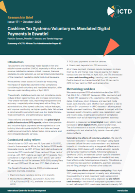 Tax payments are increasingly made digitally in low and middle income countries (LMICs), especially in Africa, where revenue mobilisation remains critical. However, there are obstacles to wider adoption, as well as limited understanding of the impacts of mandating digital tools to all taxpayers.