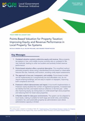 Many property tax systems in lower-income countries are severely underperforming, in significant part due to ineffective valuation methods. This brief outlines a points-based approach to valuation, which offers a cost-effective, administratively feasible, and transparent approach to valuation in lower-income countries.