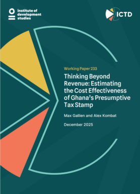 As governments in lower-income countries confront tight fiscal space, rising service demands, and large informal sectors, knowing the true costs and returns of commonly used simplified or presumptive taxes is essential to building equitable and effective revenue systems. This paper provides the first systematic estimate of the cost effectiveness of a presumptive tax in a lower-income country, using Ghana’s Tax Stamp as a case study.